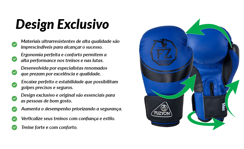 A Luva de Boxe Fuzyon Blue é desenvolvida por especialistas na área esportiva e é perfeita para praticantes e lutadores de artes marciais. As luvas de boxe Fuzyon proporcionam segurança e proteção em diversas modalidades como Boxe, Muay Thai, Kickboxing entre outras. A Luva de Boxe Fuzyon Blue é confeccionada com materiais ultrarresistentes e espuma de alta densidade.